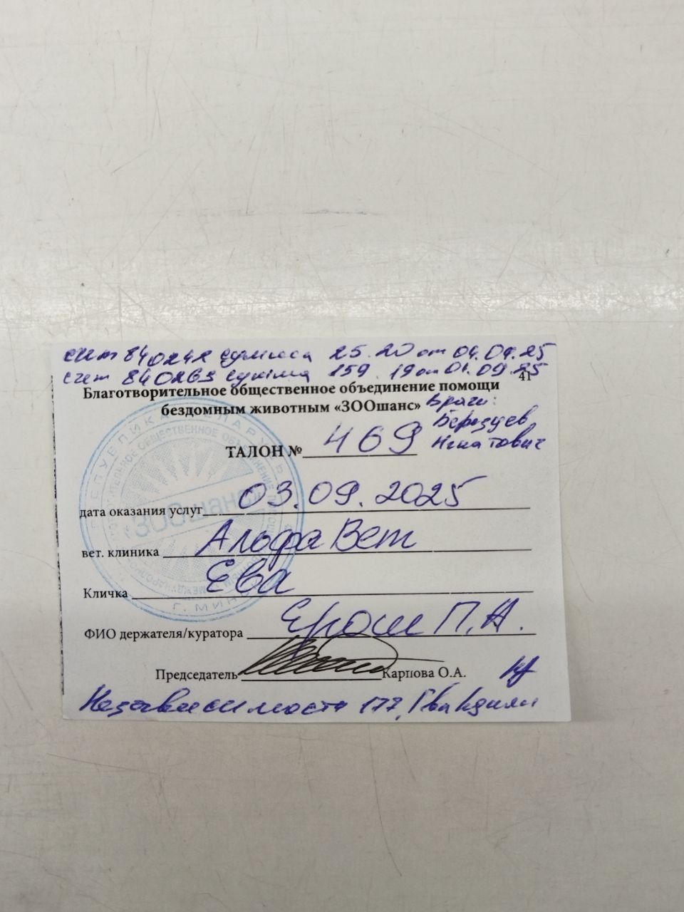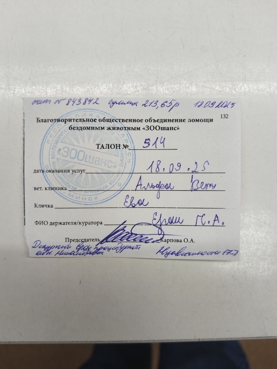 Система «Расчет» (ЕРИП) – Благотворительность – Защита животных- Зоошанс - Пожертвование- В поле ФИО: ЕРОШ для Евочки.