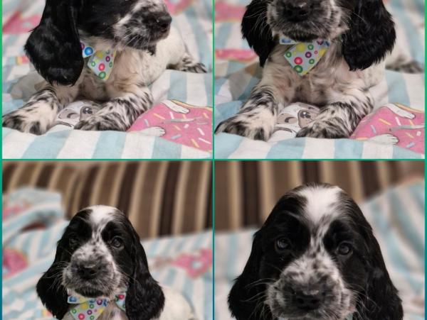 русский охотничий спаниель, родился 12.10.25. самый крупный кобель из помёта. очень дружелюбный и подвижный малыш. окрас чёрно-пегий в крапе. хвост купирован, полностью здоров. проглистован. кушает сам знает пелёнку. готов к переезду. без документов! чистокровный. по всем вопросам звоните пишите.